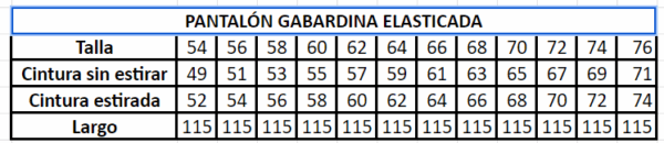 | Tallas | 54, 56, 58, 60, 62, 64, 66, 68, 70, 72, 74 |