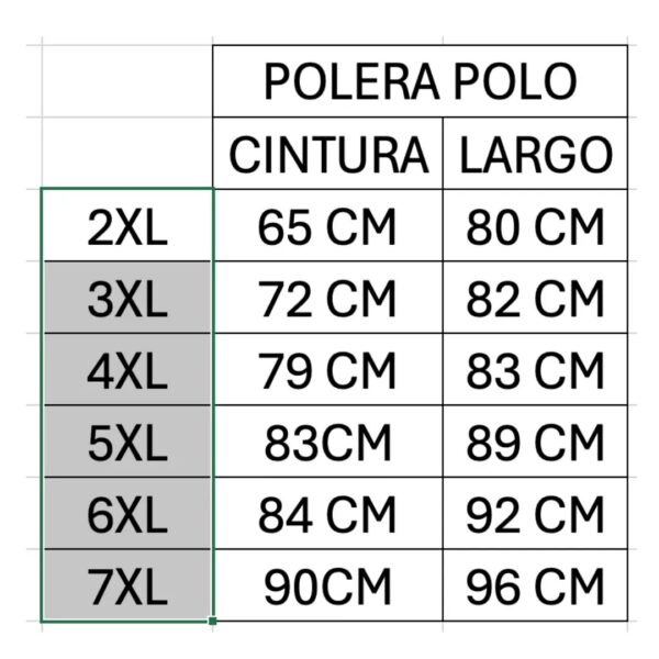 | Poleras Billardi | 2xl (69 cm mitad contorno y 86 cm de largo) |